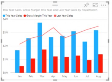 Power BI offer a single visualization that combines a line chart and a column chart. This combo chart will help us to make quickly comparison of data.