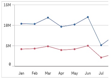 Your data set must consist of at least two data points to draw a line. A data set with a single value is displayed as a point.